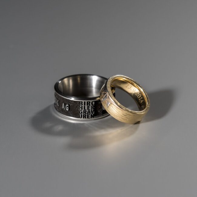Ringe, Uhren, Anhänger und andere Kunstwerke veredeln wir mit einer Gravur oder Laserbeschriftung. Mit einem Datum oder Fingerabdruck wird jedes Schmuckstück zu einem Unikat.